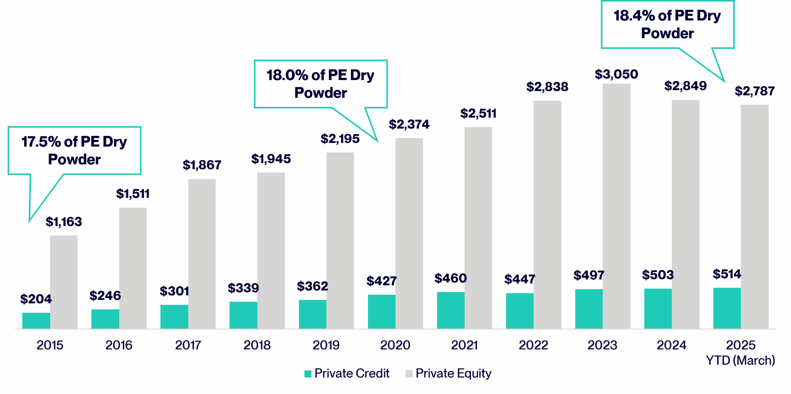 Private Credit Vs. Private Equity Dry Powder ($B)5