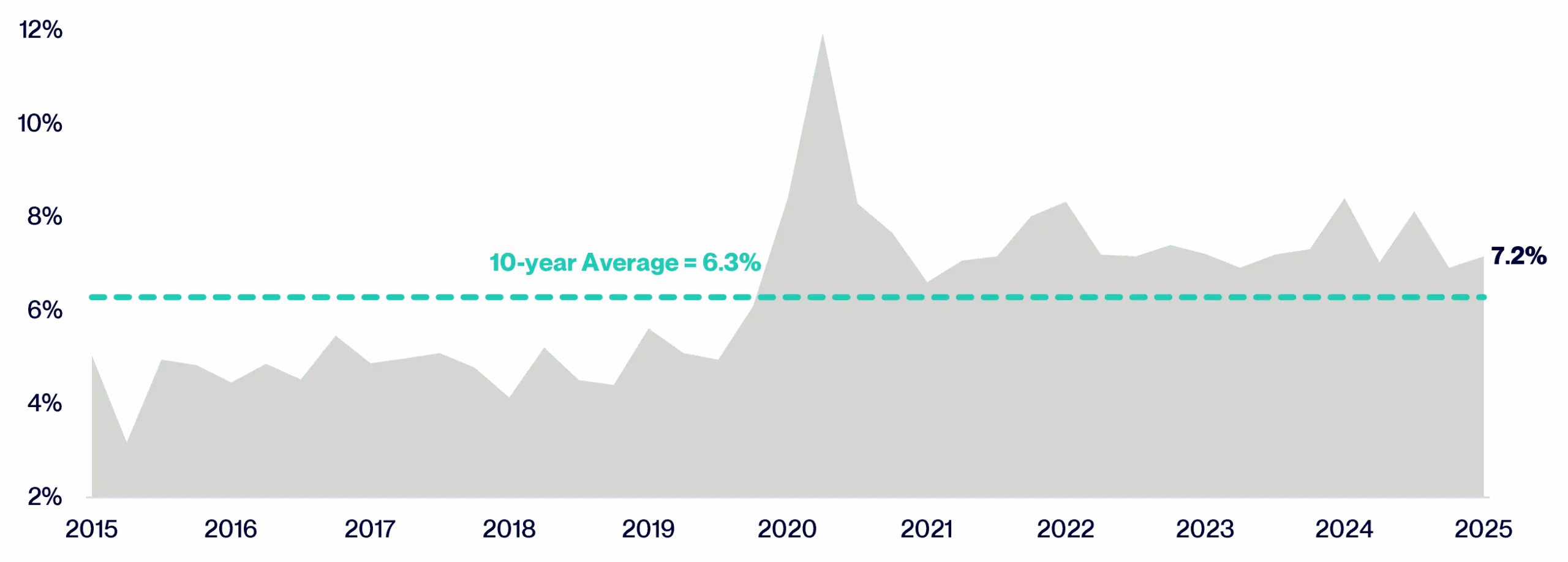 2 Source: Cliffwater as of November 1, 2025. Based on the Cliffwater Direct Lending Index (CLDI). The CLDI is an asset-weighted index that measures the performance of private middle-market corporate loans. It is constructed using data from the quarterly U.S. Securities and Exchange Commission (SEC) filings of Business Development Companies (BDCs).